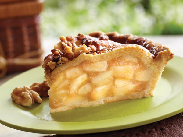 We top our fresh apple pie with rich caramel and crunchy chopped walnuts for a dessert that’s decadently delicious. Just one bite and you’ll see why this apple pie is so special.